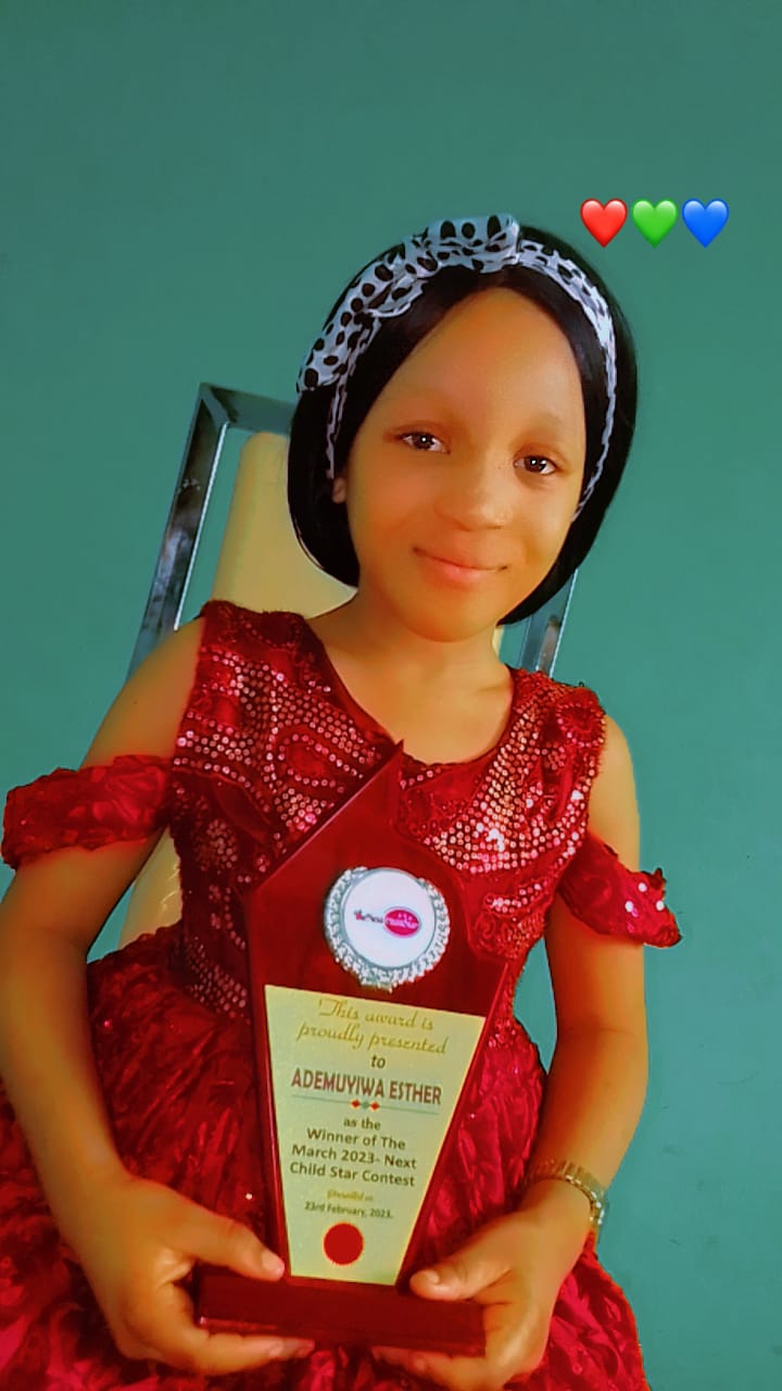 We say a big congratulations to Ademuyiwa Esther for emerging as the Winner of the March 2023 - The Next Child Star Contest