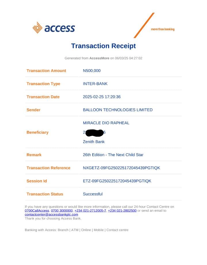 We say a big congratulations to FATUSI MUBARAK OLADAPO for emerging as the 2nd Runner Up of the 26th Edition - The Next Child Star Contest [Completed]