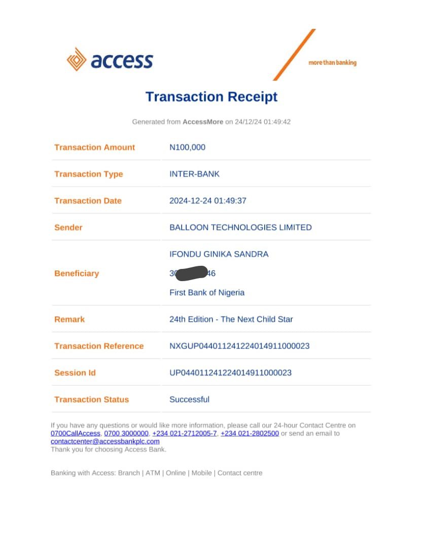 We say a big congratulations to Trinity Ugorji for emerging as the 1st Runner Up of the 24th Edition - The Next Child Star Contest [Completed]