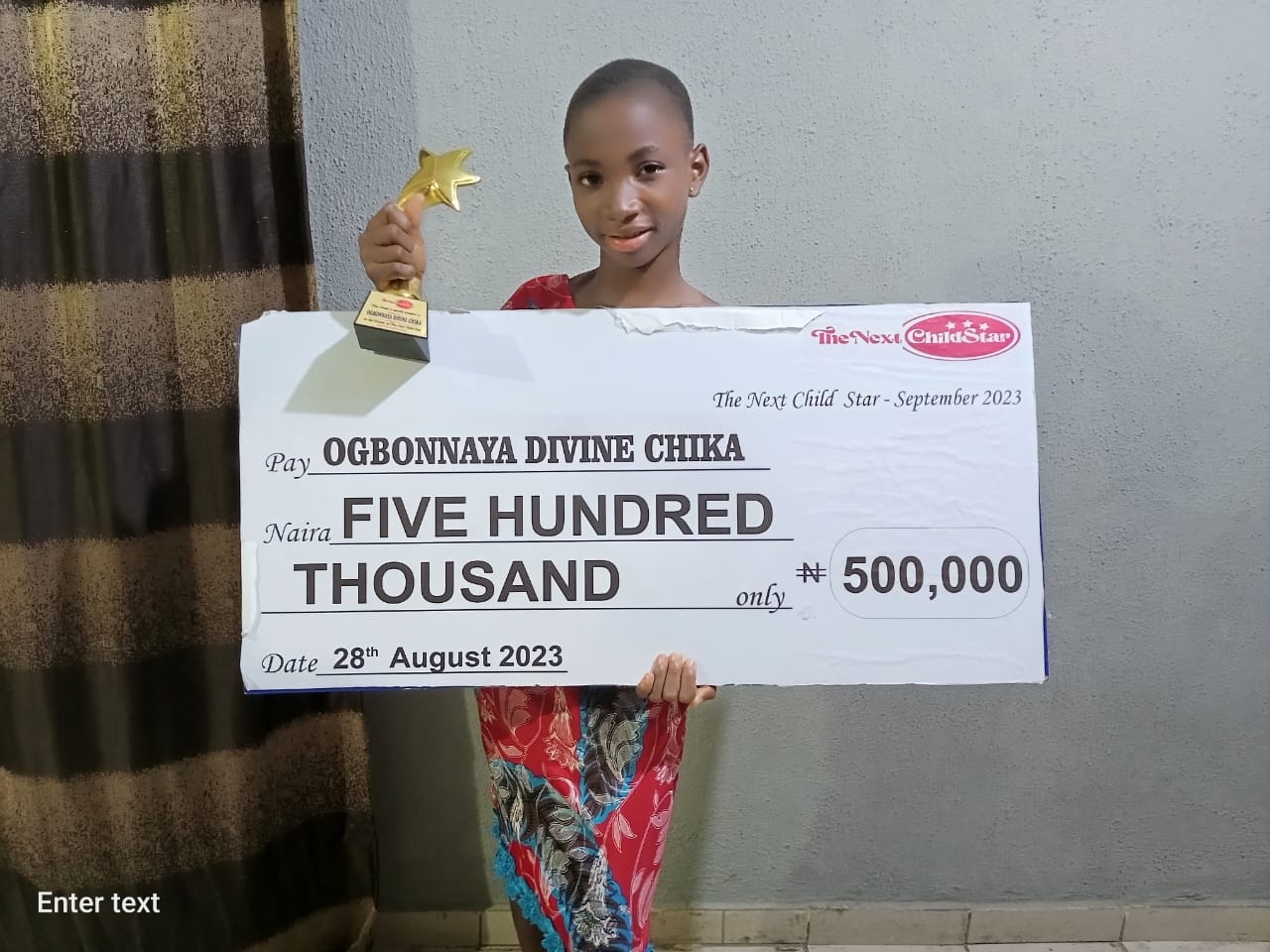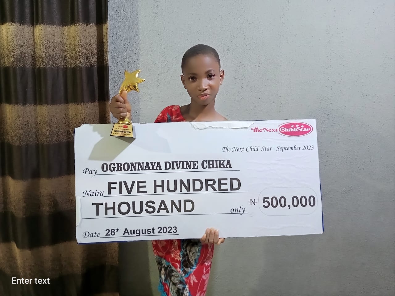 We say a big congratulations to Ogbonnaya Divine Chika for emerging as the Winner of the September 2023 - The Next Child Star Contest